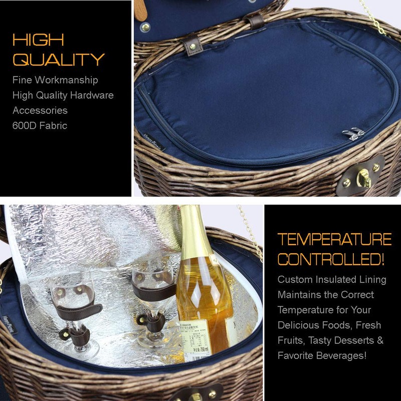 • Occasions - Elegant and amazing design of this fitted willow picnic basket set is the best choice for romantic picnic, outdoor party, concert, road trip and camping, besides, it is the top gift for anniversary, holidays, festivals, such as Christmas, Thanksgiving Day, Father's Day, Mother's Day, and birthday. Such an exquisite wicker hamper can be definitely considered as artwork.