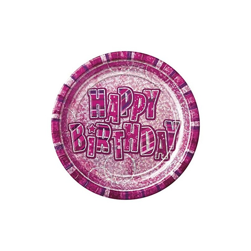 Unique with Pink Sparkle 23 cm Paper Plates, Pack of 8 - Pink