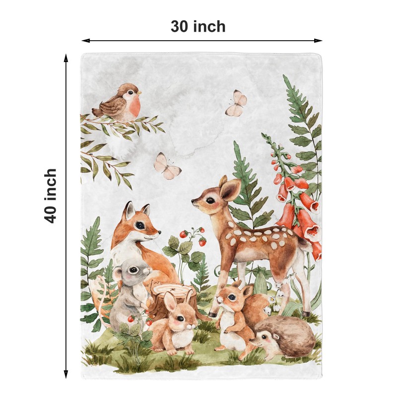 UNIQUE Woodland Ultra Soft Fleece Baby Blanket 30x40in, Cute Forest Animals Baby Blanket, Gender Neutral