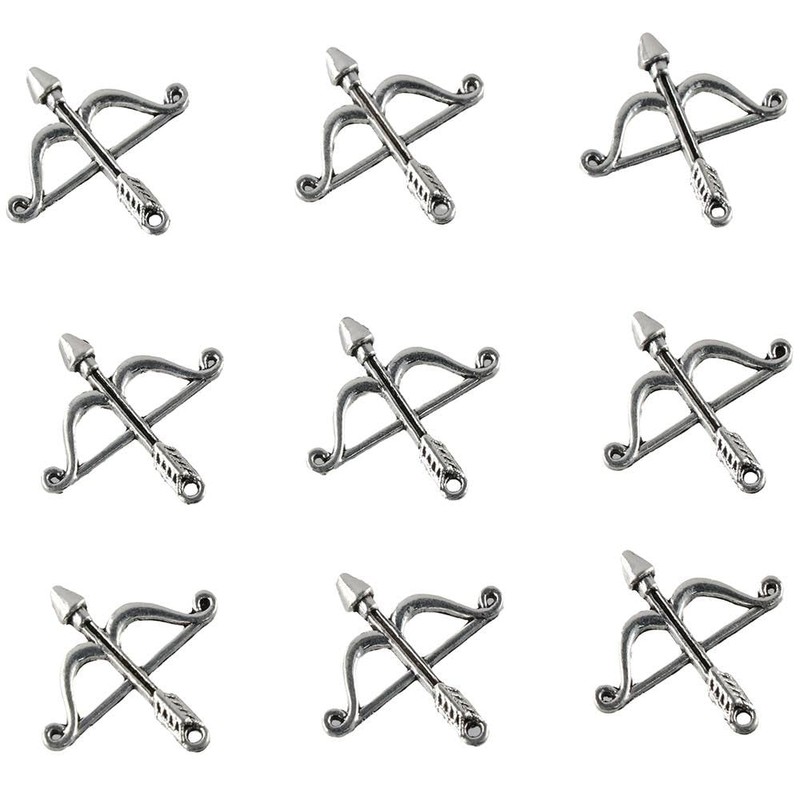 Uniquer 100Pcs Antique Silver Bow and Arrow Charms Pendants,Archery Charms with Loop for DIY Jewelry Making,Necklaces,Earrings,Key Chains