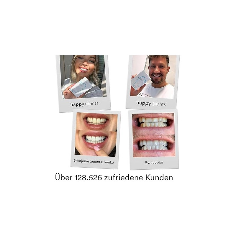 Unsere Bleaching Strips wurden in einer Studie von einer Apotheke getestet und erhielten eine Bewertung von 4,9/5,0 für ihre Wirksamkeit. Diese Bestätigung garantiert eine erfolgreiche Aufhellung zu 100%
