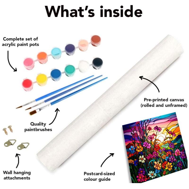 - Complete Paint Tool: The oil painting landscape for adults is equipped with a complete tool set. The complete set contains: 1 canvas 40 x 50 cm (without frame), 3 brushes in different sizes, 2 hooks, 2 matching screws, 1 set of rich in color paints and 1 instruction manual. Open the package and enjoy the fun of painting modern art