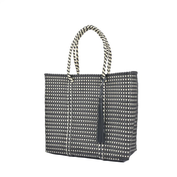 [Uniqute] Mercado Bag, Large, Mexico, Handmade, Kingham_Black x Cream