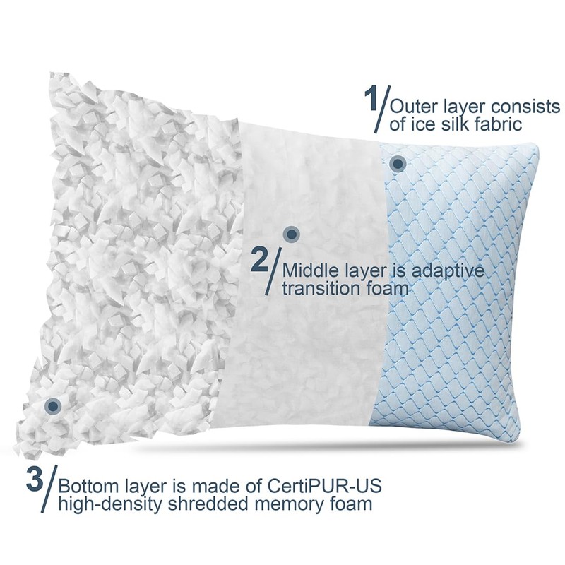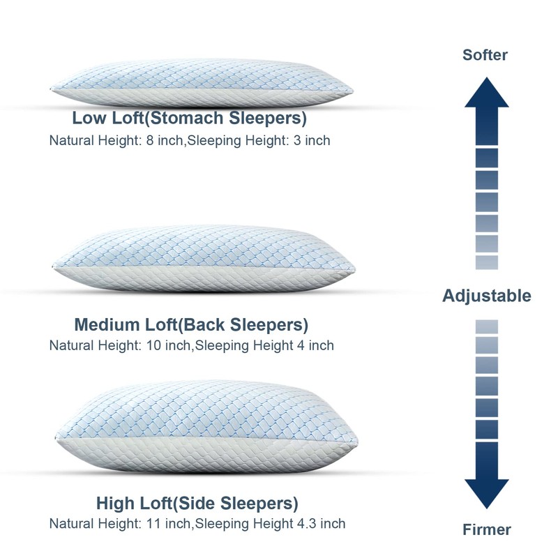 - Adjustable Firmness: The shredded memory foam pillows features a zippered inner and outer cover, you just need to add or remove filling to suit your size.