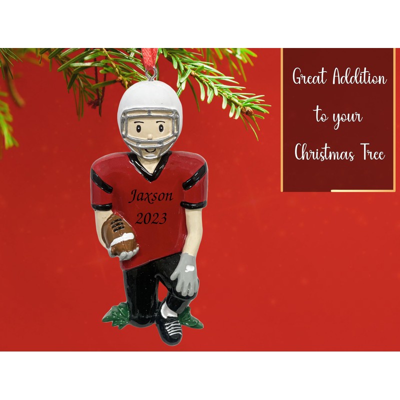 UniqXmas Personalized Football Boy Christmas Ornament 2024 | Male Player in Jersey with Helmet & Ball for Xmas Tree | College Player Coach Team Fan Keepsake - Custom Name & Year