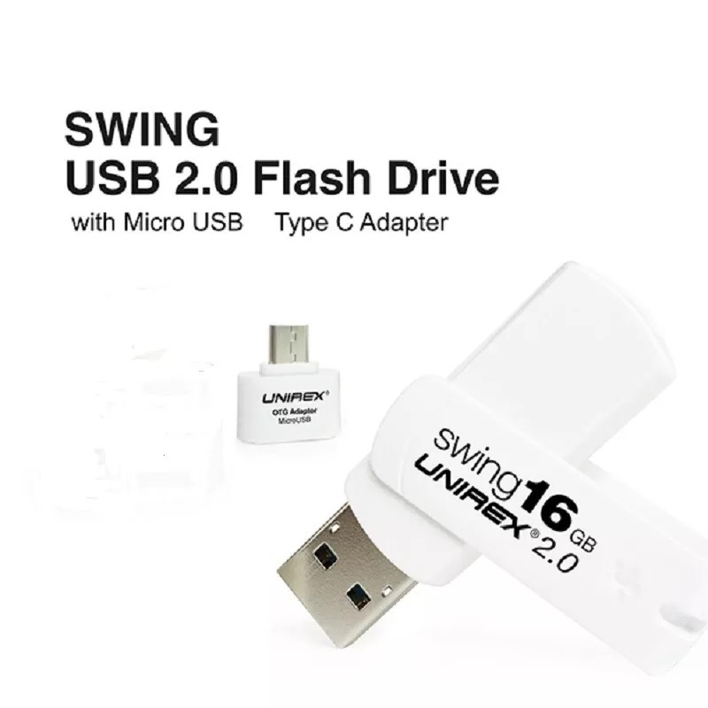 UNIREX 16GB USB 2.0 Swivel/Swing Flash Drive With Micro USB-C Adapter