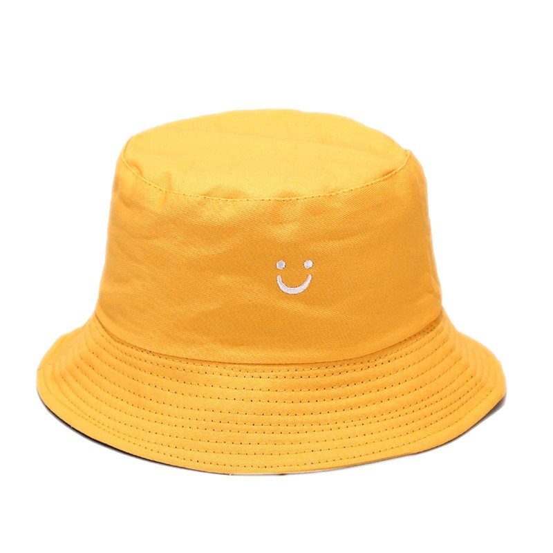 Unisex 100% Cotton Packable Bucket Hat Sun Hat Unisex Beach Cap for Men Women Kid, Smile Face Beige/Yellow, One Size