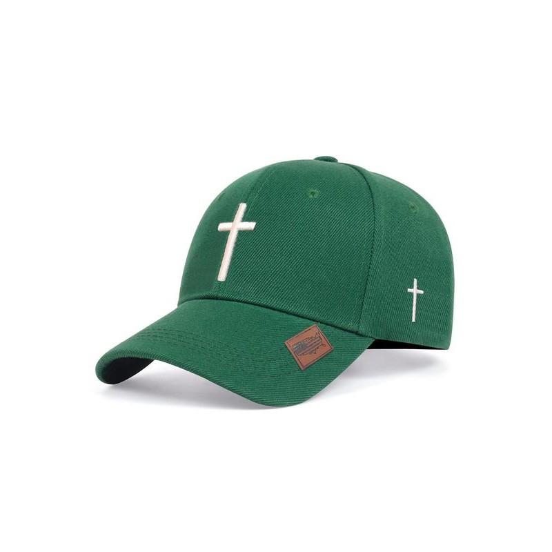 Unisex Casual Cross Embroidery Baseball Cap, Casual Outdoor Sports Hat for Men & Women, Adjustable Sun Protection Cap for Daily Wear:_Green_one-size