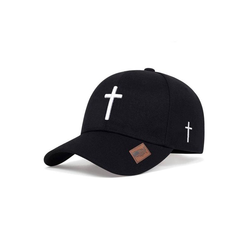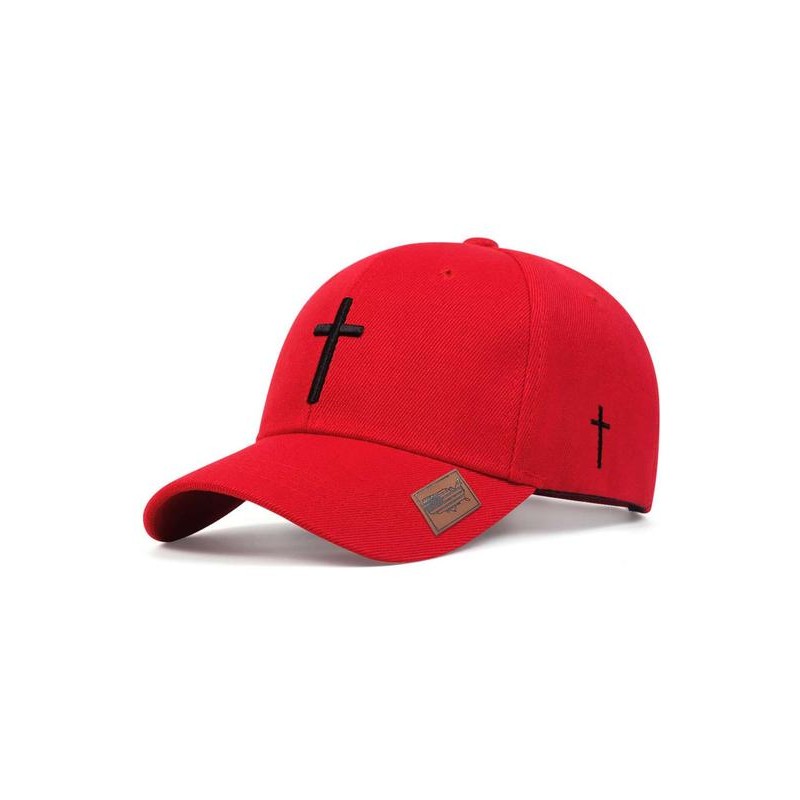 Unisex Casual Cross Embroidery Baseball Cap, Casual Outdoor Sports Hat for Men & Women, Adjustable Sun Protection Cap for Daily Wear:_Red And Black_one-size