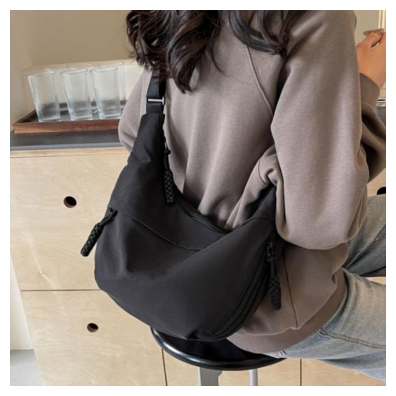 Unisex college student simple half-moon dumpling cross bag messenger bag bag black 5ea