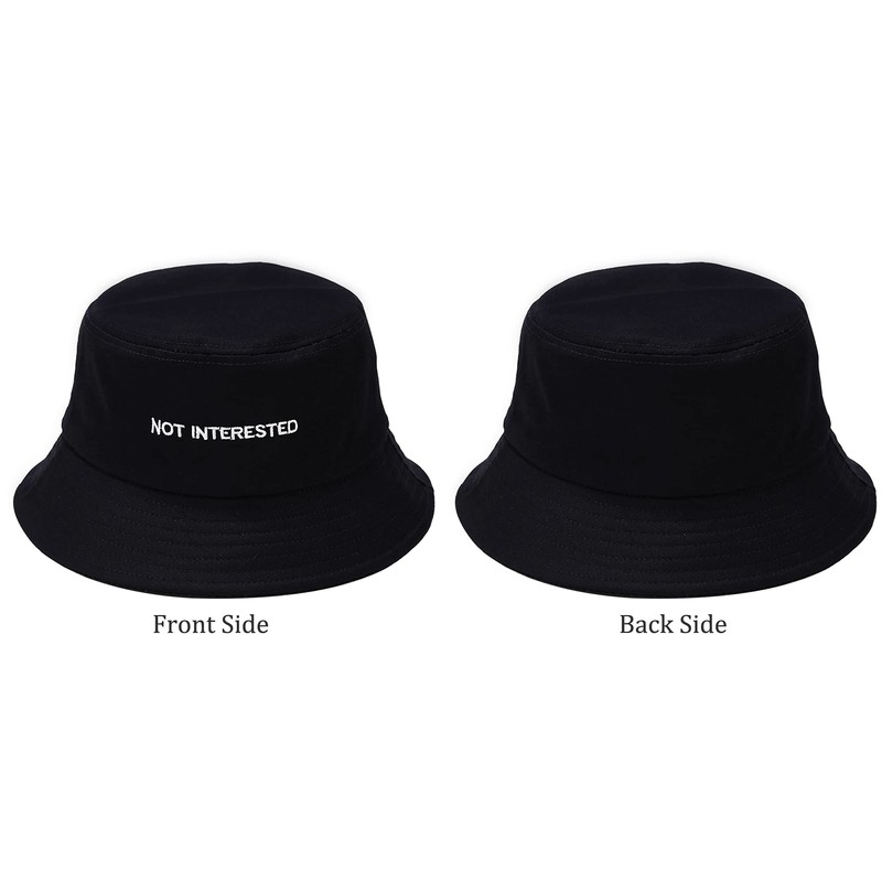 Unisex Cotton Embroidered Bucket Hat Packable Travel Beach Sun Hat for Women Men (Not Interested Black)