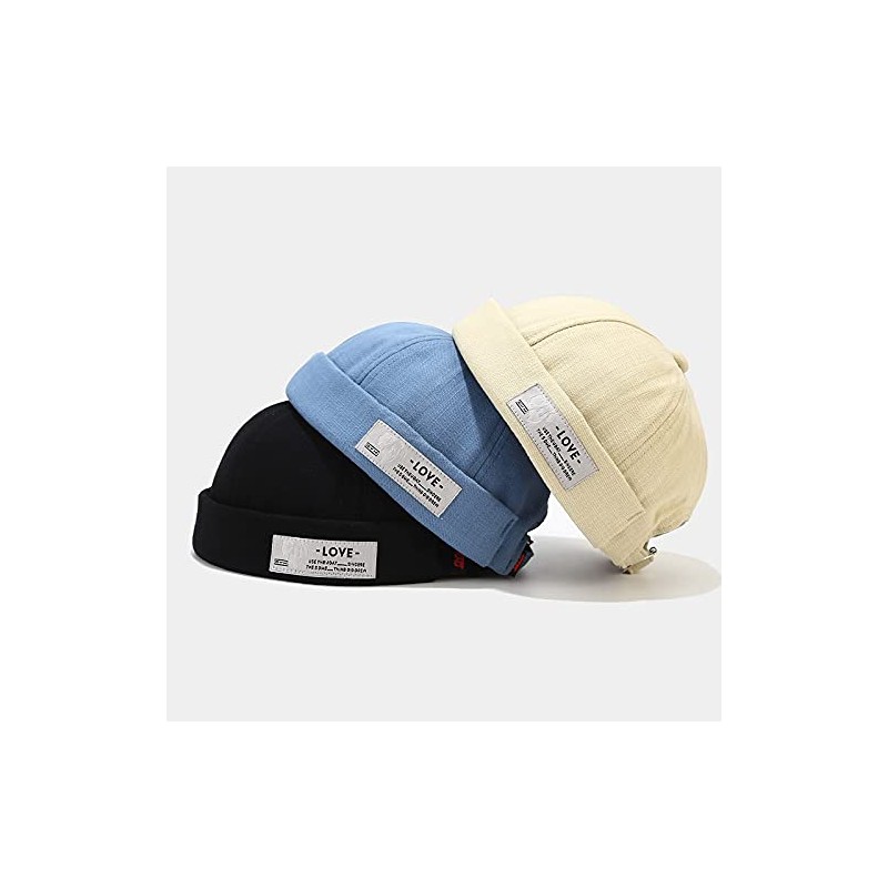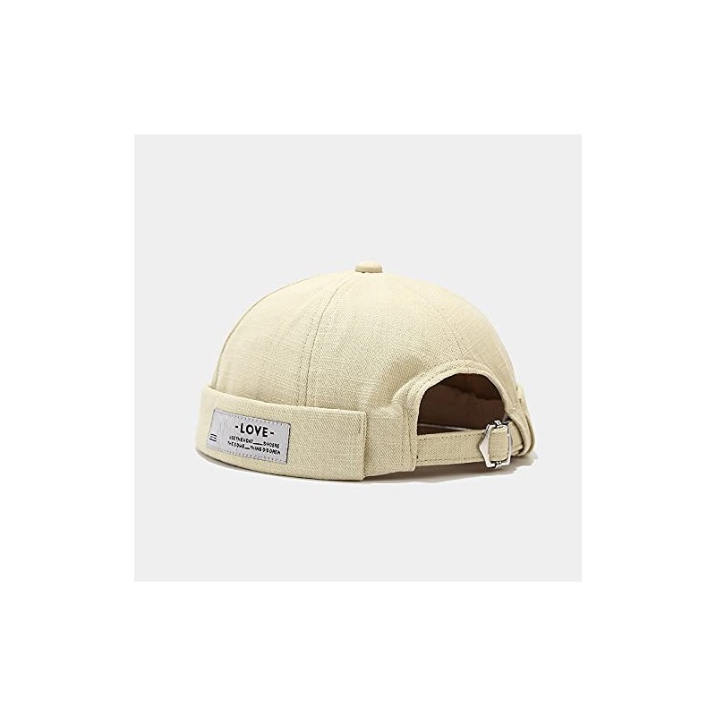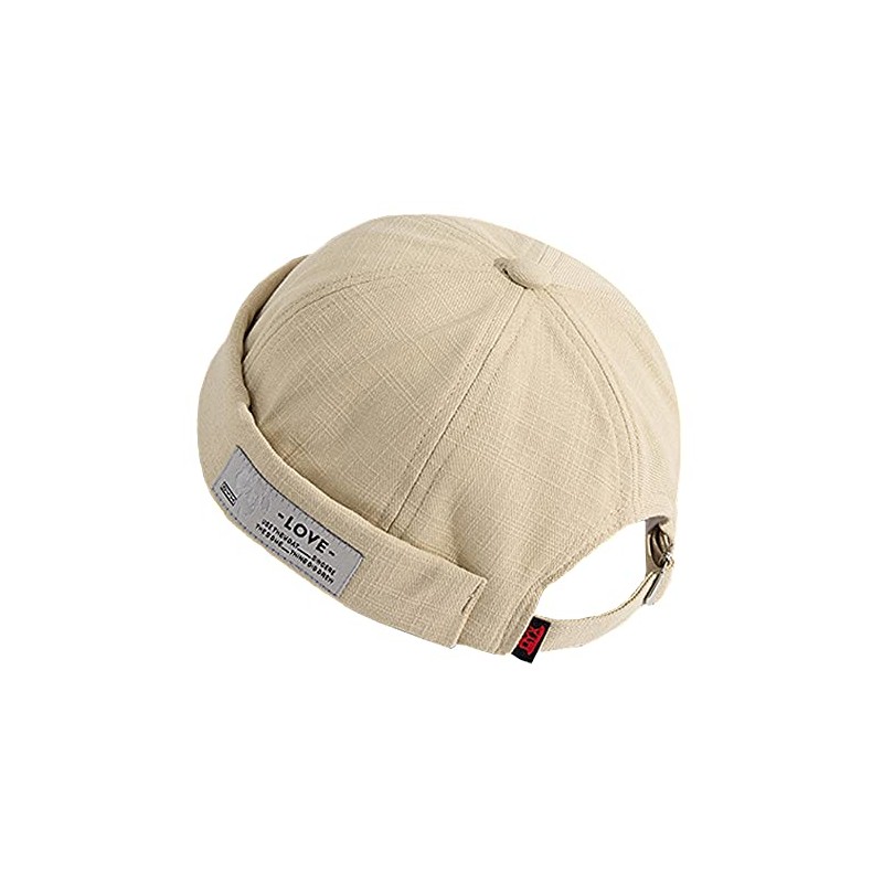 Unisex Docker Brimless Hats Beanie Skullcap Worker Sailor Cap Retro Rolled Cuff Skull Caps with Adjustable (Love-Beige)
