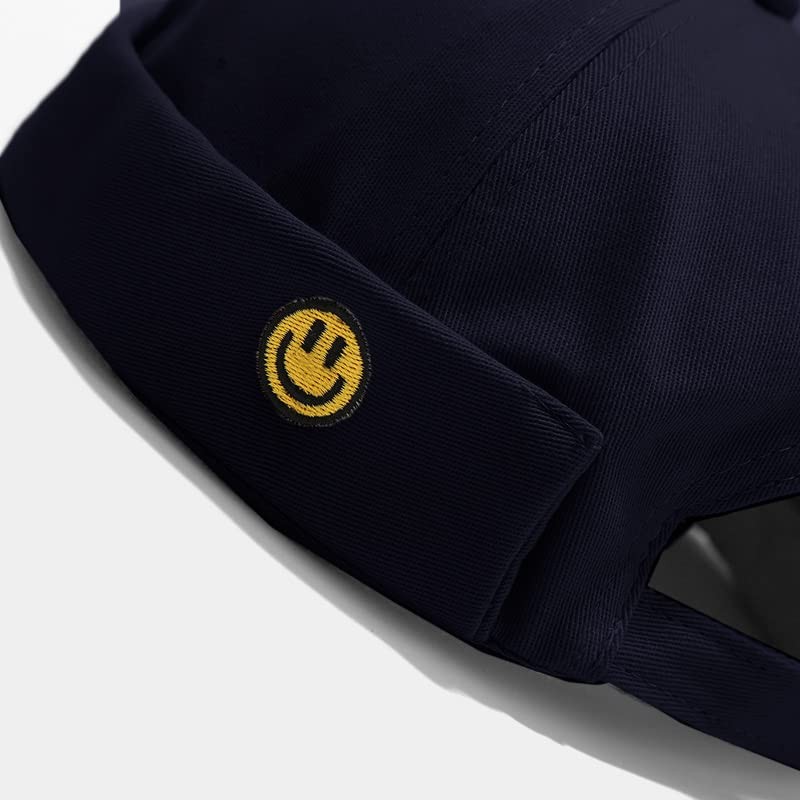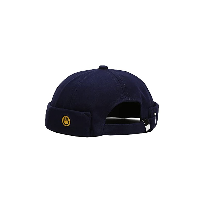 Unisex Docker Cap Hats Skullcap Beanie Worker Sailor Cap Brimless Cap Retro Rolled Cuff Skull Caps with Adjustable (Smiley-Dark Blue)