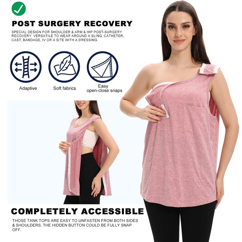 - 【 Perfect For 】This tank top is not just for sweating and drying quickly. It can also be used for recovering from surgeries like shoulder, heart, rotator cuff, spinal, and breast surgeries. It's also helpful for physical therapy, sports injuries, and for people with disabilities. It's a necessary shirt for those with limited mobility and a great gift for post-surgery patients.