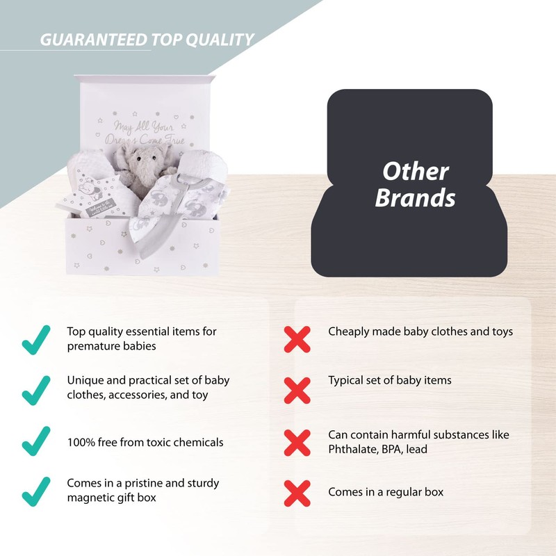 - MAKING THE RIGHT CHOICE - Finding the right present for a premature new baby can be a difficult task because of the wide choice available. Baby Box Shop offers you a value for money option in this thoughtfully arranged unisex newborn gifts