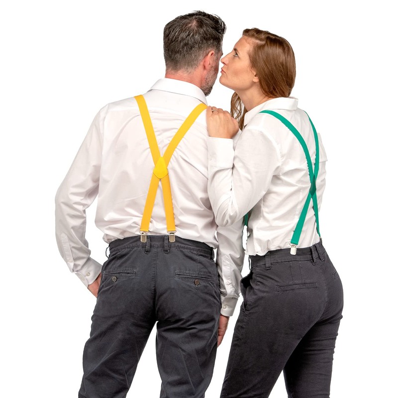 - Adjustable unisex braces designed to fit most individuals, suitable for adults up to 6'5" / 194cm