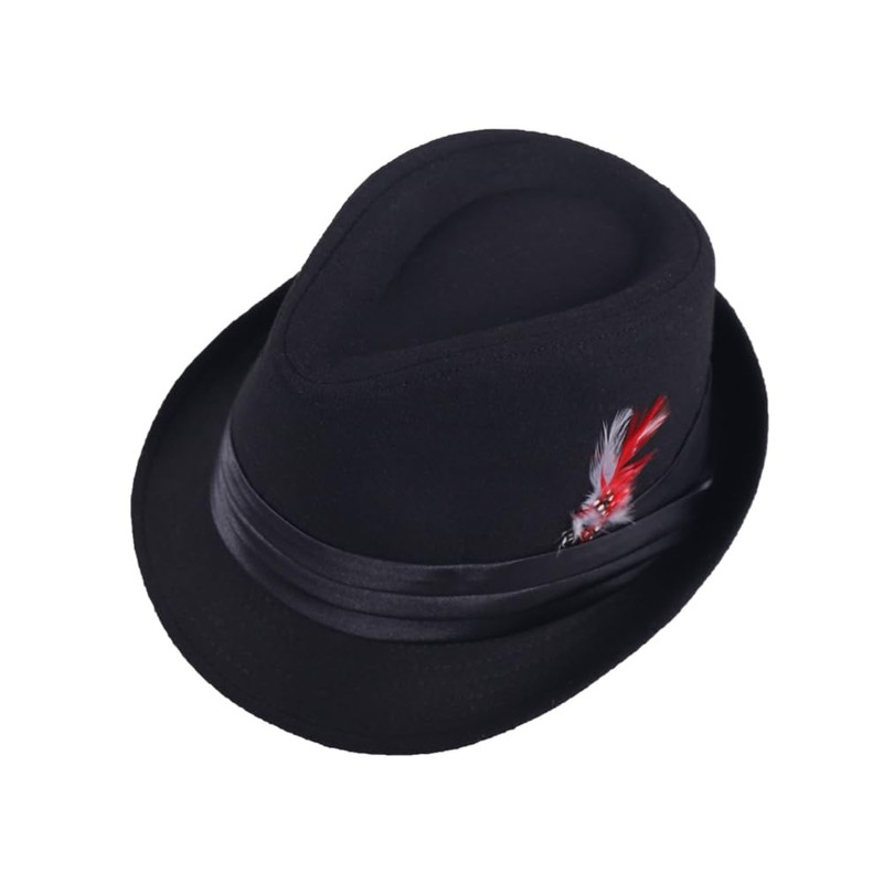 Unisex Timelessly Classic 20s Trilby Fedora Hat Men Women Short Brim Panama Jazz Cap Manhattan, D-black Red, One Size