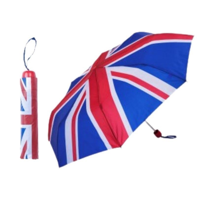 Unisex Union Jack Print Red White Blue Foldable Compact Handbag Small Umbrella