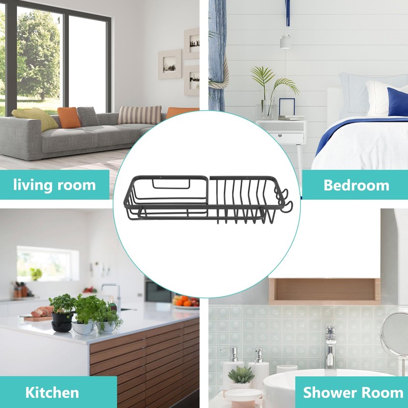 - 🚿 DUAL USE IN THE KITCHEN AND BATHROOM TO MEET ALL-ROUND NEEDS: The sponge holder for kitchen sink is not only suitable for the kitchen, but the multi-functional sink storage rack can also be used in the bathroom! Equipped with two hooks, you can easily hang peelers, cleaning sponges, detergents or brushes, and even hang towels on the rack. It can be stored in the kitchen and bathroom, which comprehensively improves the efficiency of home storage and makes home life more convenient.