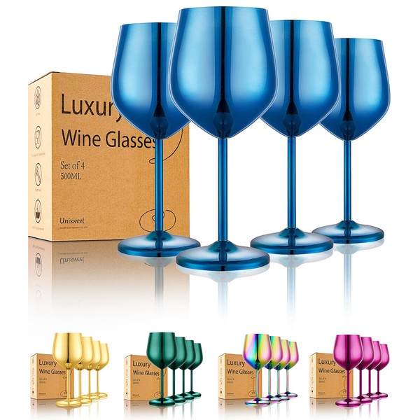 UNISWEET Stainless Steel Wine Glasses Set of 4 Unbreakable Blue Wine Glass 18 oz Unique Metal Wine Goblets for Outdoor, Travel, Camping, Pool, Ideal Gift for Wine Lovers