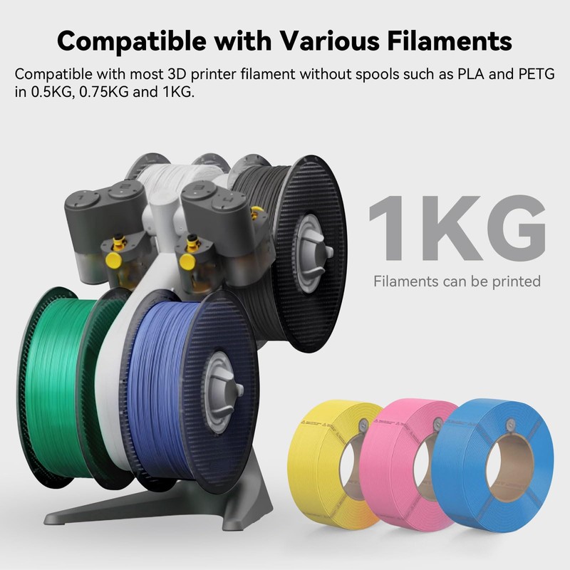 - CompatibilityCompatible with most 0.5KG,0.75KG and 1KG PLA, PETG and other 3D printer spoolless filament,providing more choices for you.