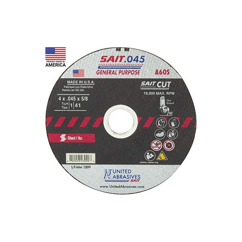 United Abrasives-SAIT 23099 A60S General Purpose Cut-Off Wheels (Type 1/Type 41 Flat) 4" x .045" x 5/8", 50-Pack