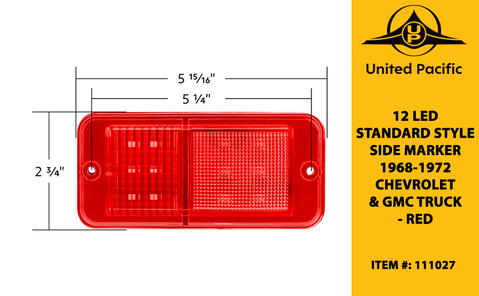 United Pacific 111027 12 LED Standard Style Side Marker For 1968-1972 Chevrolet & GMC Truck - Red – 1 Unit