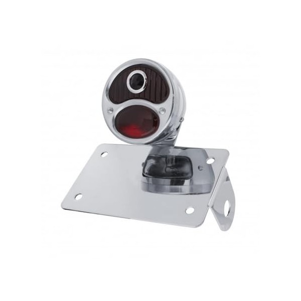 UNITED PACIFIC 20322 Chrme Horizontal Side Mount Lp Bracket, 1928 "Duo Lamp Blue Dot Lens Tail Light