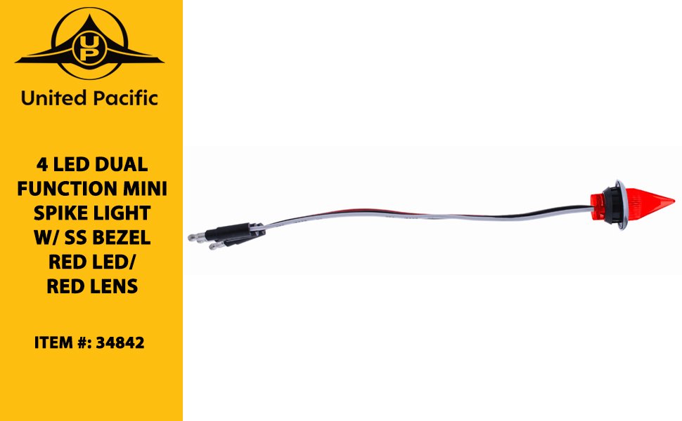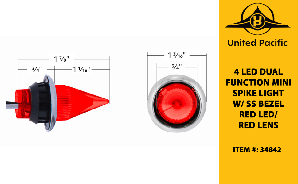 - INFORMATION: Our United Pacific 4 LED Dual Function Mini Spike Red Light with SS Bezel goes through the same quality control as all our UP products offered. We’ve spent countless hours of research and development to produce the finest products, along with exceptional OE style pieces to fit your classic cars and trucks. We, at United Pacific, listen to our customers as we are always striving to update and create the newest items on the market.