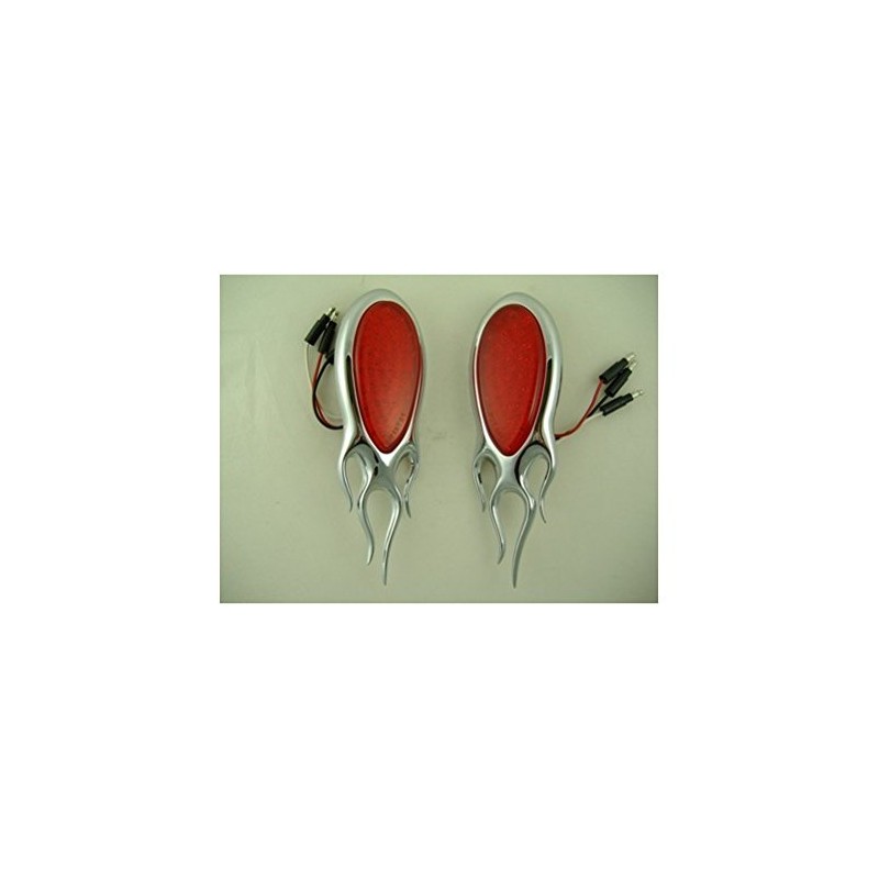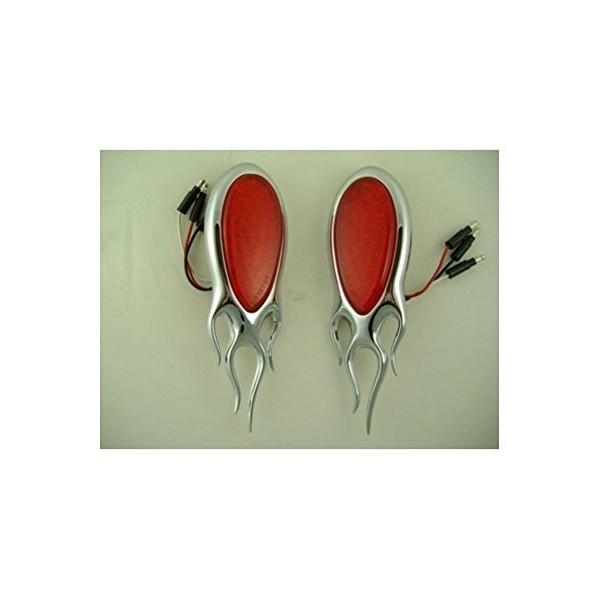 United Pacific Red LED Tear Drop Trailer Stop Turn Brake Tail Lights/Chrome Flame Bezel