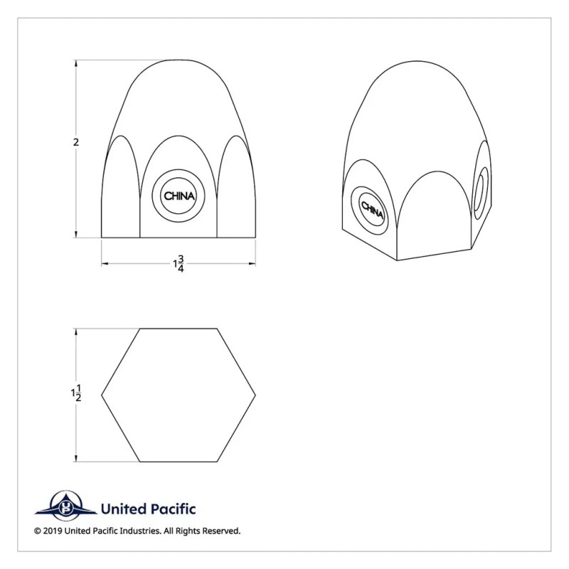 United Pacific (UP) Lug Nut Covers 1 1/2" Push-On Bullet Chrome Steel 2" Tall #10004 Set of 5