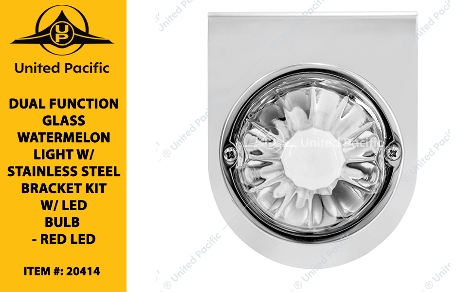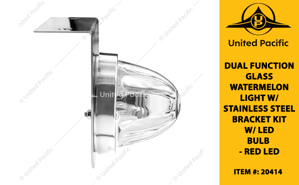 - INFORMATION: Our United Pacific Dual Function Glass Watermelon Light with Stainless Steel Light Bracket Kit with LED Bulb – Red LED – goes through the same quality control as all our UP products offered. We’ve spent countless hours of research and development to produce the finest products, along with exceptional OE style pieces to fit your classic cars and trucks. We, at United Pacific, listen to our customers as we are always striving to update and create the newest items on the market.
