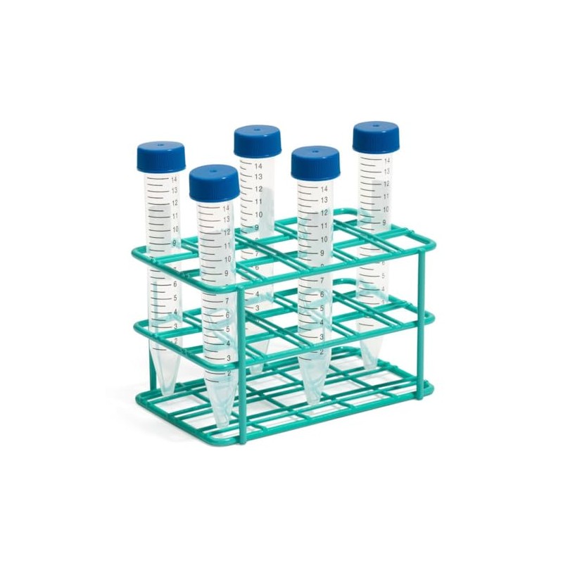 United Scientific™ Expoxy Coated Wire Rack, 15 mL Centrifuge Tubes, 15 Place, Teal