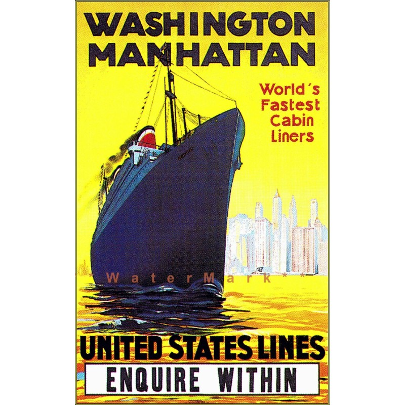 United States Lines 1933 Cabin Liners Vintage Poster Print Retro Style Art -...