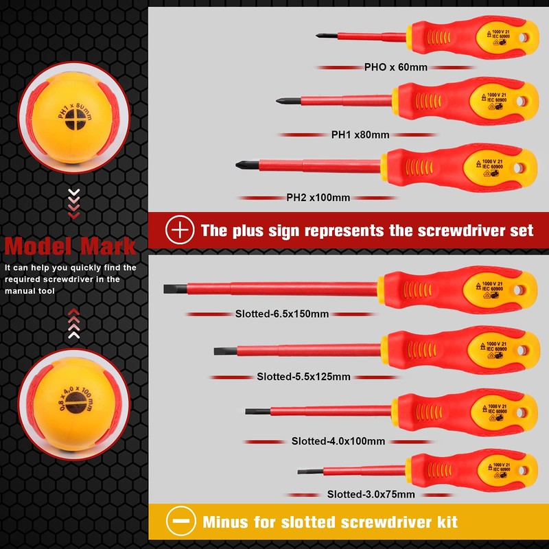 - [WIDELY USE]: The insulated screwdrivers are suitable for household appliances, furniture installation, computer repair, vehicle repair, electrical maintenance, ship, industrial applications and many public life areas to meet different electrical needs. Best gift for husband, father, craftsman & metal workers