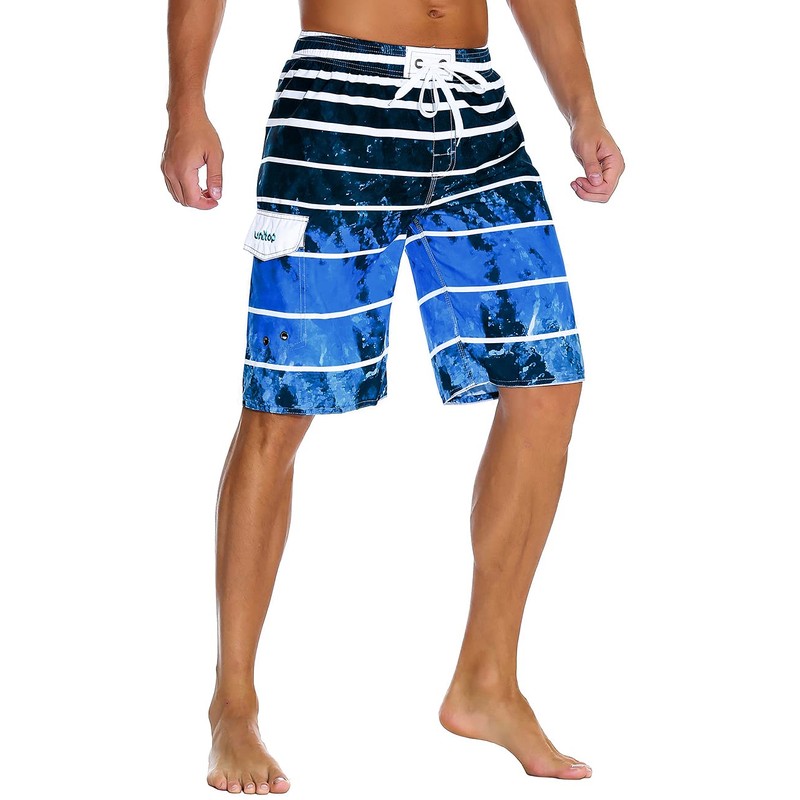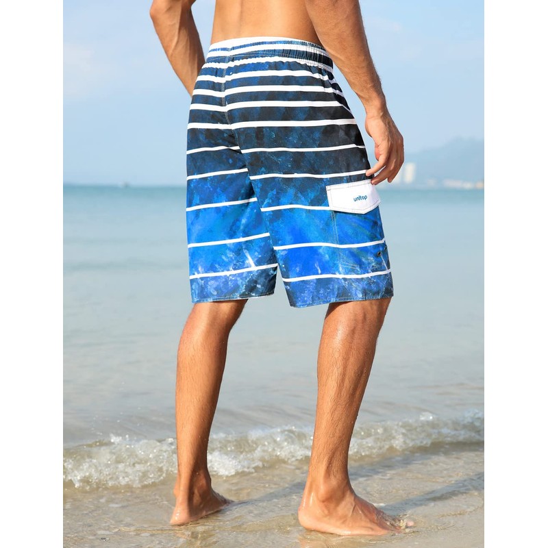 unitop Men's Beachwear Swim Trunks Quick Dry Striped Drawstring Blue-1 30
