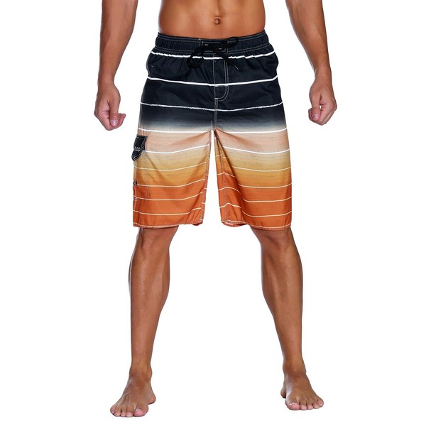unitop Men's Swim Trunks Surfing Shorts Summer Quick Dry Striped with Mesh Lining Orange-32