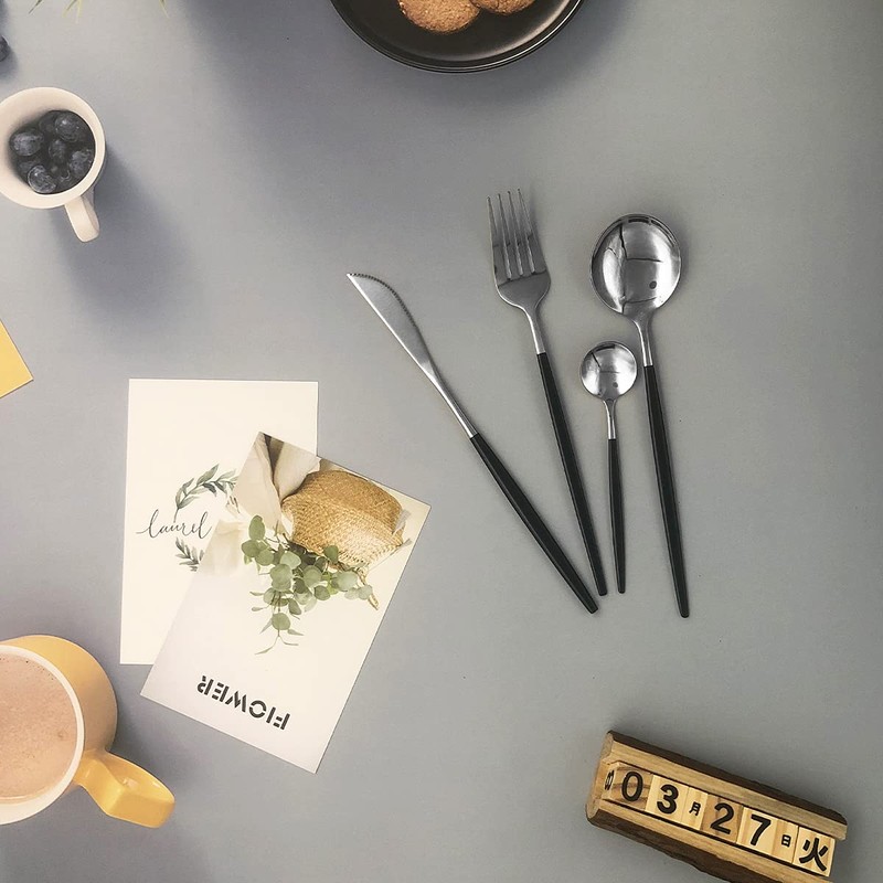 - Juego completo de cubiertos para 6: el kit consta de 24 piezas en total, 6 cucharas de cena, 6 tenedores, 6 cuchillos de cena y 6 cucharas de té. Proporcionarle todo lo que necesita para tener una gran cena con su familia o amigos.