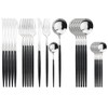 Uniturcky - Juego de cubiertos de acero inoxidable, 24 piezas, juego de cubiertos de acero inoxidable para 6, mango negro pulido, juego de cubiertos, cuchillo tenedor y cuchara para hogar y restaurante, apto para lavavajillas