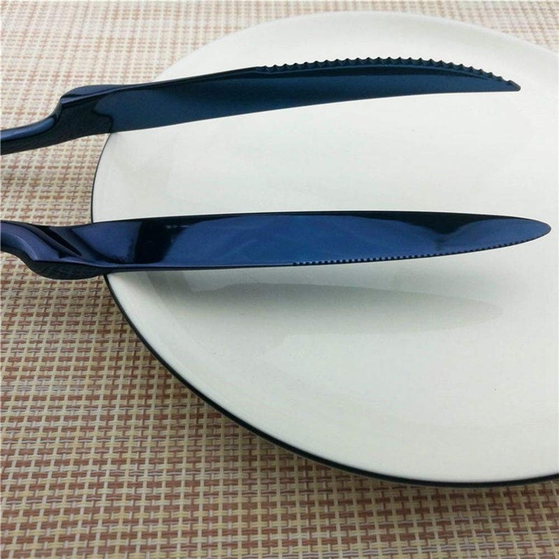 Uniturcky Stainless Steel Mirror Polished Flatware Set, Steak Knife Dinnerware Knife Fork Salad Fork Dessert Spoon 6-piece, Service for 1, Blue
