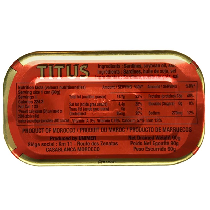 Univer TITUS Meaty Sardines Enveloped in Soybean Oil, Source of Omega-3 Fatty Acids, Pack of 12
