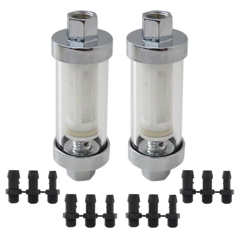 Universal 1/4" 5/16" 3/8" Chrome Glass Reusable Washable Inline Fuel Filter with Stylish Chrome and Glass Design Multi-fit Fuel Filter 2PCS