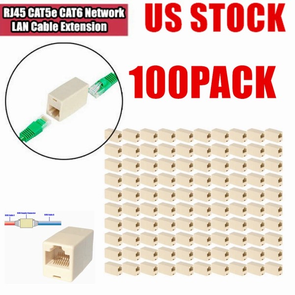 Universal 100PACK RJ45 Inline Coupler Cat6 Cat5e Cat5 Ethernet LAN Network Cable Adapter