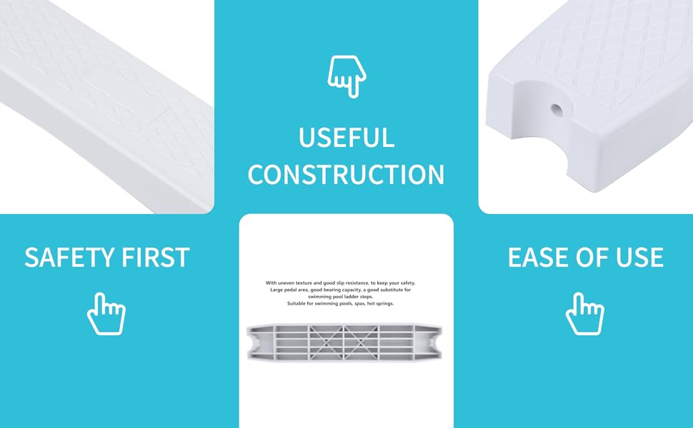 - Ease of Use: Enjoy hassle-less installation and removal. Beyond swimming pools, utilize our steps in hot springs and spas as a aid for climbing in and out. Its versatile application makes it a valuable addition to various aquatic environments