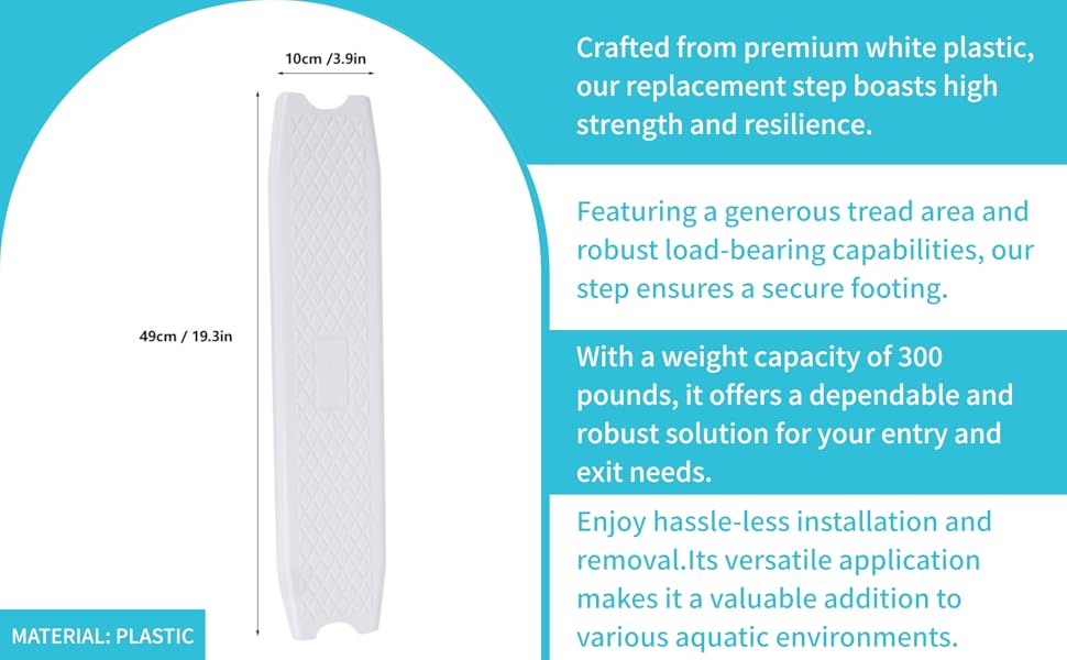 - Safety First: Featuring a generous tread area and robust load-bearing capabilities, our step ensures a secure footing. Its textured appearance provides excellent grip, minimizing slip risks and promoting safety, allowing you to fully embrace the joy of swimming