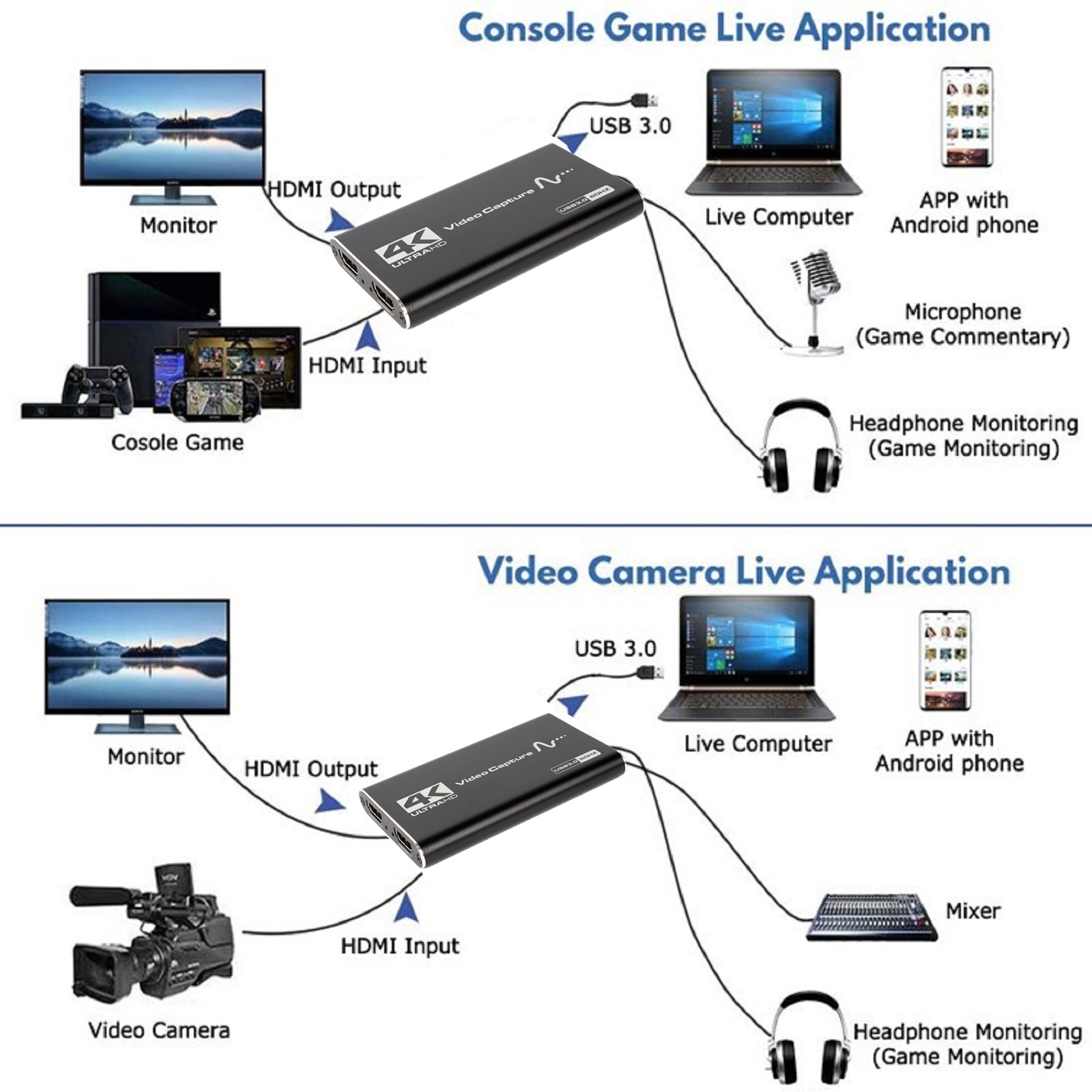 Capture video up to 1080P@60hz, Support 4K HDMI input