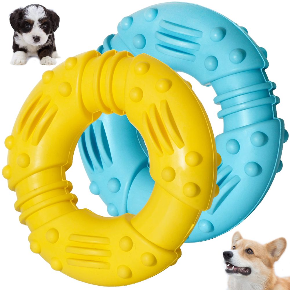 2 Pack Dental Dog Chew Toys - Fetch Ring for Teeth Cleaning, 4.7 Inch Non-Toxic