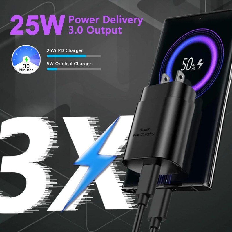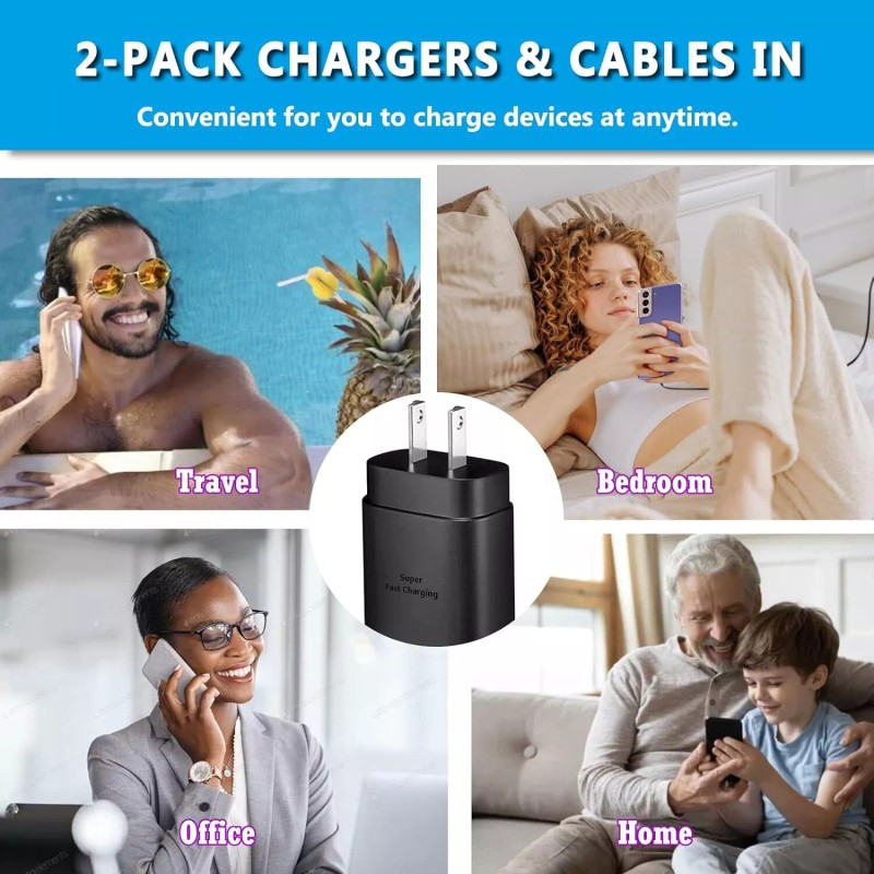 【Super Fast Charger Type C】25W PD 3.0 Technology provides Max 25W output power for all Galaxy S24/S23/S22/S21/S20/Ultra/Plus/FE/Z Fold/Z Flip/Note 20/Note 10 Fast Charge Your battery from zero up to 100% in about 60 min,5 times as fast as Standard Charger Block,10 times as fast as PC USB port and saves you time.