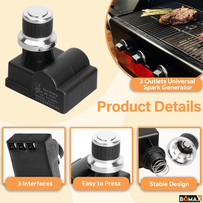 - ❀3 Outlets Push-Button Switch Ignitor Replacement Parts for Charbroil, Weber, Backyard, Kenmore, Char-Griller, Master Chef, Outdoor Gourmet, Uniflame and more