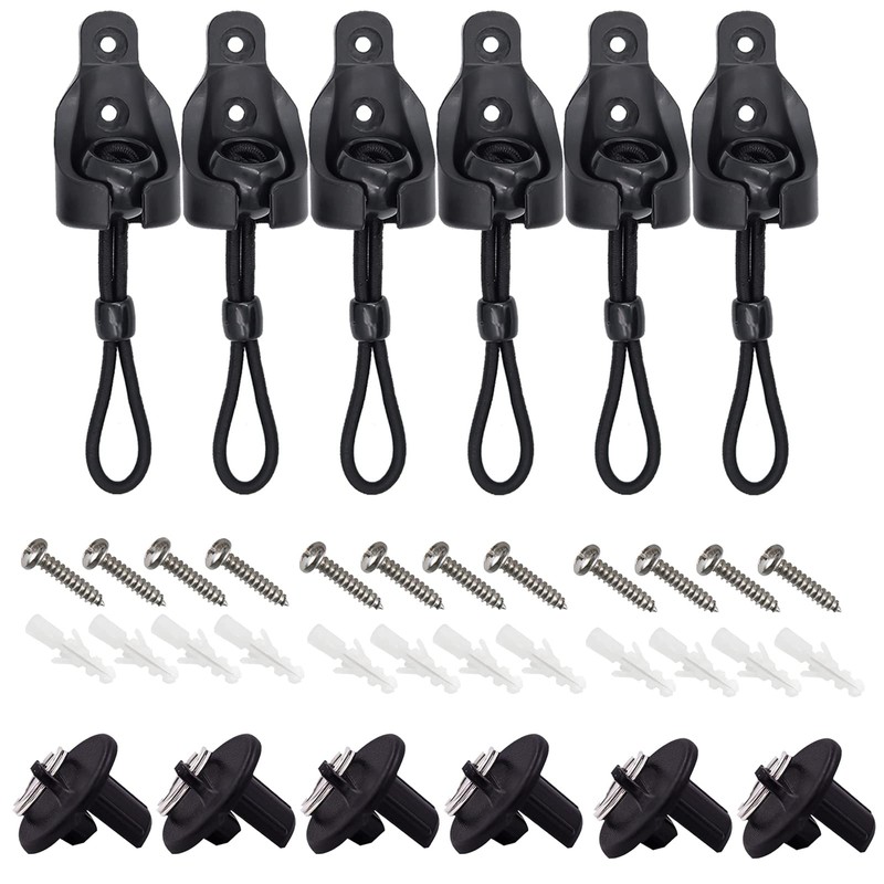 - ★【Parts】 The bungee kit includes 6 windproof balls and bases, 6 pull ring end caps, 12 high-density stainless steel screws and 12 plastic anchors.